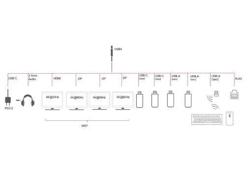 •HDMI/DP support Quad-screen extended 4K@60Hz,support MST
