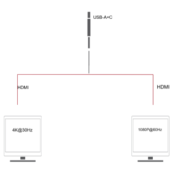 •Dual-HDMI adapter, operates in bus-powered mode and supports more display options, including extension, mirroring, rotation, and main display selection.